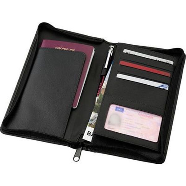 Leather Charles Dickens® zipped travel wallet with various internal pockets and a pen loop.