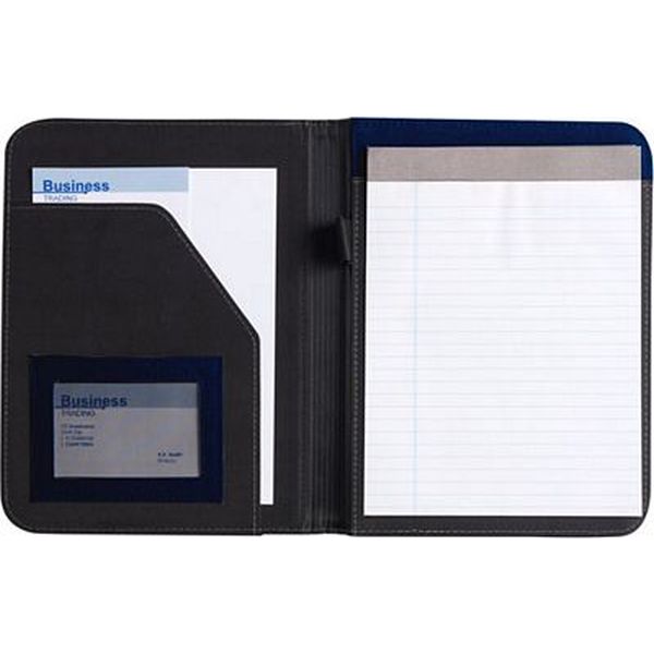 A5 Conference folder in a 70d nylon material, featuring one large internal pocket and one small business card pocket, nylon pen loop and a thirty sheet lined note pad.