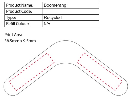 Boomerang made from recycled plastic available in two colours with two print areas.