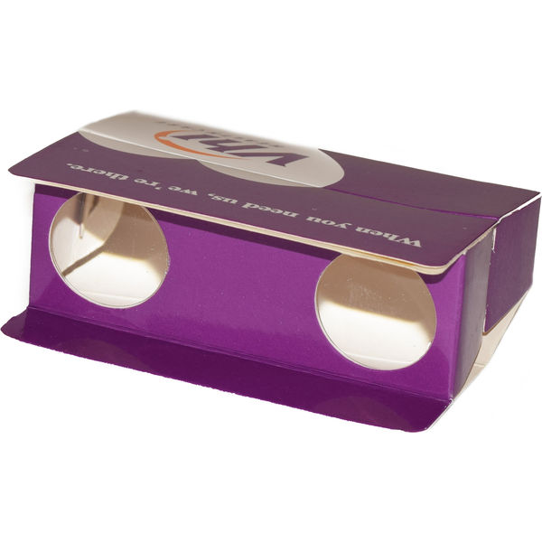 Folding Binoculars are a useful promotional tool with an all over branding area which can be used for festivals sporting events concerts and other general events. Our Binoculars are made of 300GSM with an Acrylic Lens that magnifies approximately X3 that can be printed Full Colour all over.