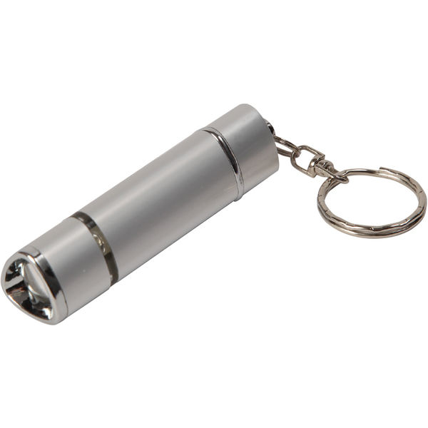 Aluminium cased torch keyring. 3 sided case and looks great and represents very good value. Button cell batteries included and have a separator to be removed before use.