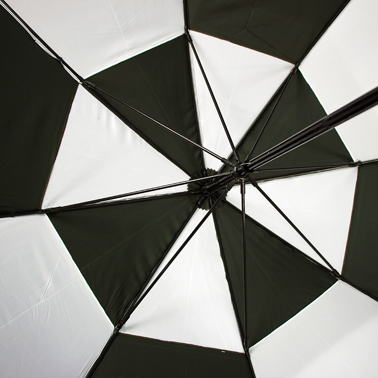 75cm rib length golf umbrella, fibreglass shaft, spring and cover with windproof device, hand-opening, nylon canopy, straight rubber handle.