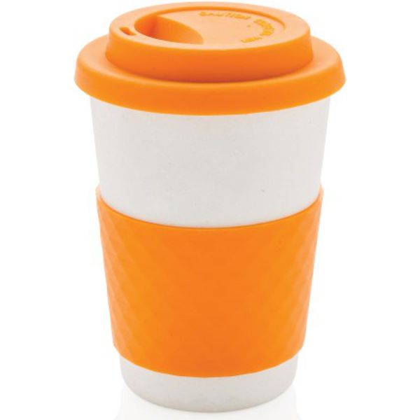 Made from naturally grown organic bamboo fibre. With silicon lid and grip. Free from any harmful synthetic material. Reusable and highly durable. Dishwasher safe. Content 270 ml.