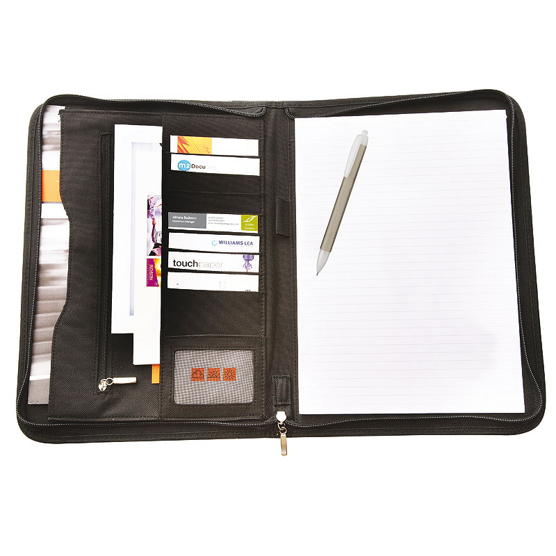 The zipped alternative has all the qualities of the standard version but with additional security! It's compartments allow for excellent organisation and comes with both a pen and pad.