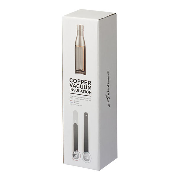 Keep your drinks hot for 12 hours or cold for 48 hours. Made from 18/8 grade stainless steel with vacuum insulation and a copper plated inner wall, your beverage is kept piping hot or ice cold depending on your requirements. Volume capacity is 500ml. Presented in an Avenue gift box.
