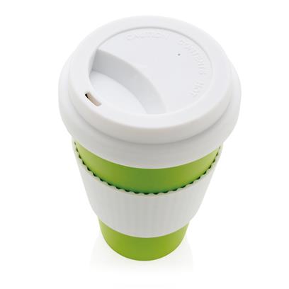 Made from naturally grown organic bamboo fibre. With silicon lid and grip. Free from any harmful synthetic material. Reusable and highly durable. Dishwasher safe. Content 430 ml. Supplied individually boxed in standard eco carton - custom printed box available at extra cost.