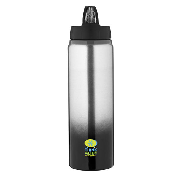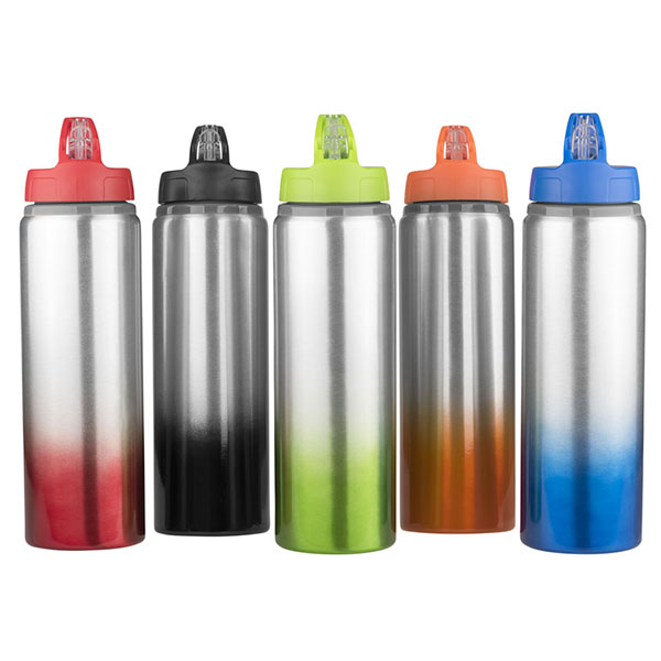 Single-walled construction with screw-on, spill-resistant lid and flip-top drinking spout. Easy to use when on the go. This attractive drinking bottle features an on-trend, gradient colour appearance. Volume capacity is 740 ml. BPA free aluminium.
