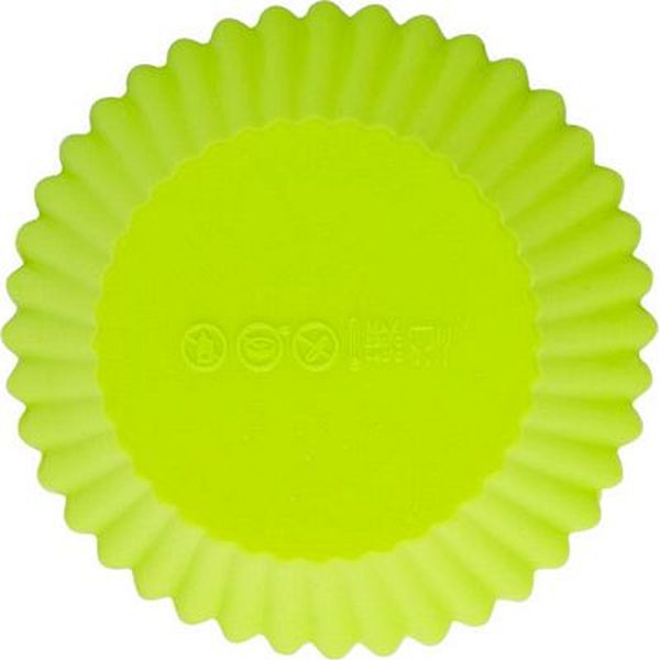 Set of four silicone cupcake liners in a transparent plastic packaging.