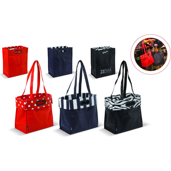A carrier bag and shoulder bag in one.This line is recognised by its fresh and joyful designs. The top side is easy to turnover so you can use the bag as a shoulder bag. Turn it over again and you have a useful carrier bag. The bags are available in different colours and designs.