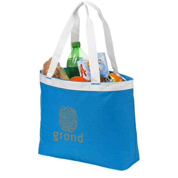 Reykjavik cooler shopper tote. An over the shoulder tote perfect for keeping groceries cool on the journey home from shopping. Features a small zipped pouch inside for keys & loose change. 600D polyester.