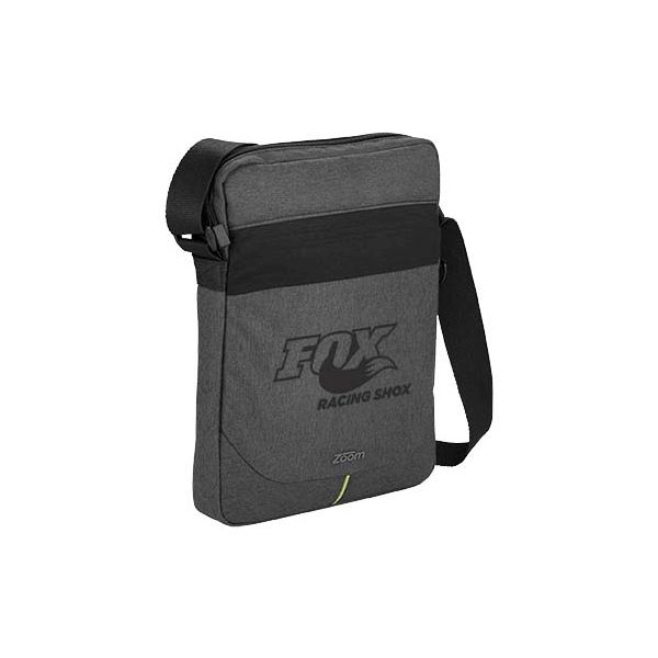 Power Stretch tablet bag. Zipped main compartment is padded for a tablet and also has dedicated neoprene pockets for your mobile power charger. The outside of the bag features a front accessory pocket that secures with elastic for quick access to all your mobile devices and smartphone. It also has a port so you can run a cable from the main compartment where the power is located to either the front accessory pocket or into a wall without having to remove your charger from the bag. Adjustable shoulder strap. 600D Polyester. 270.