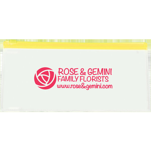 Transparent pencil case made from PVC in five vibrant trim colours. Ideal for student exam use.