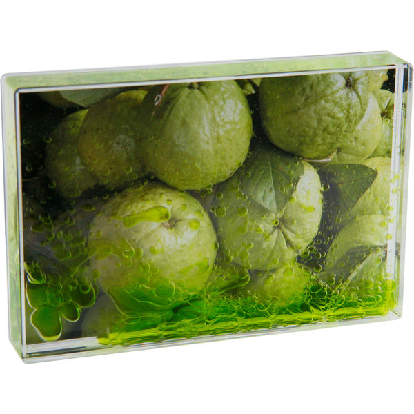 Blue liquid filled rectangular acrylic block with large branding area. Shake to bring your brand alive! Can be supplied as plain stock or assembled with a printed insert to one side.