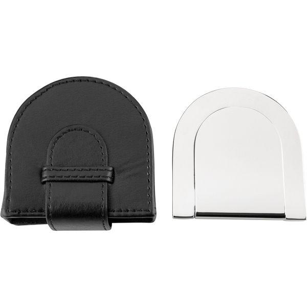 A classic art deco style clock with a hand polished metal case. Quartz alarm movement with large foldable cover which is ideal for laser engraving. Presented with an elegant leather look travel case. Battery included. RoHS and CE compliant.