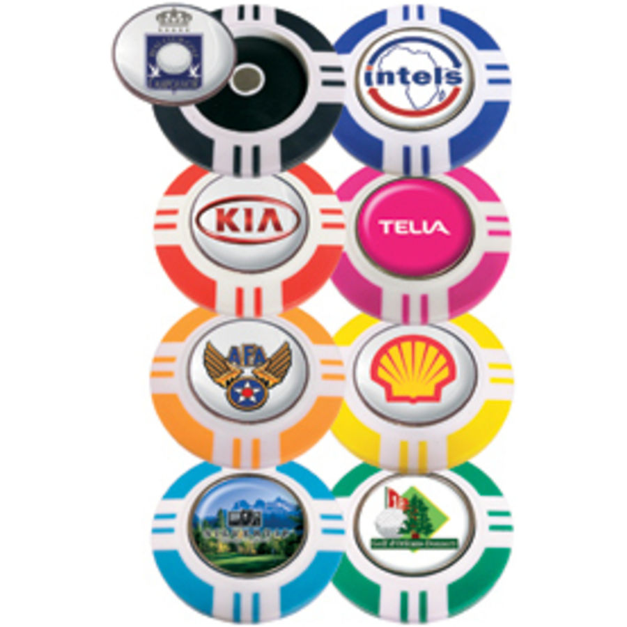 Bright Markers! Plastic Poker chip style ball marker with a removable magnetic ball marker available in eight bright colours.
