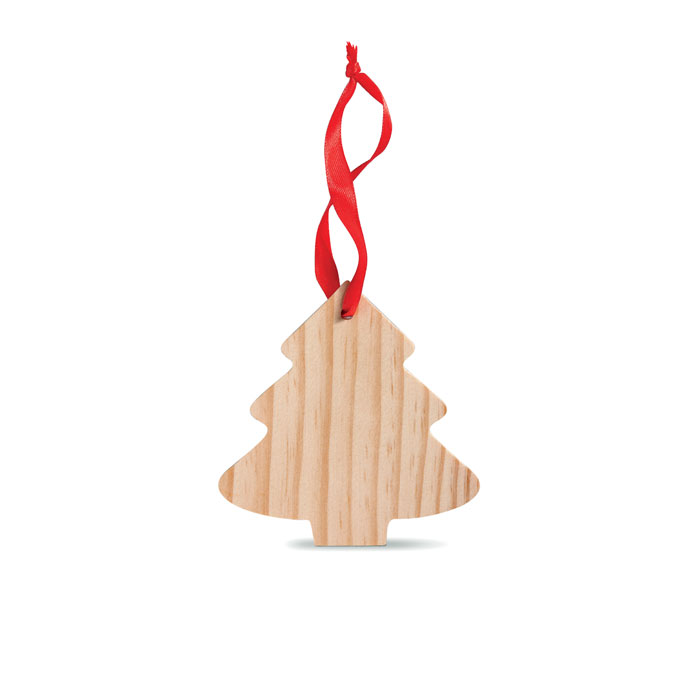 Wooden Christmas hanging decoration supplied in either star shape or Christmas tree shape. Printed with logo.