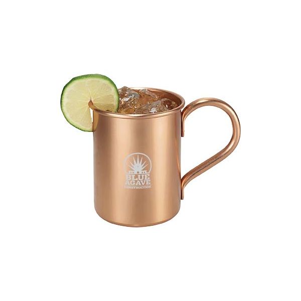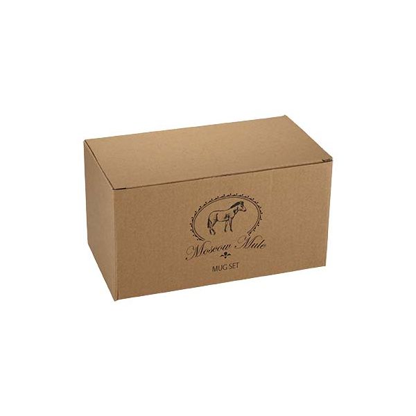 Moscow Mule mug gift set. Gift set inspired by the popular ''Moscow Mule'' cocktail. Aluminium construction with full copper coating. Gift box features a robust history of the cocktail. Includes recipe card. Each mug is 415 ml. Copper coated aluminium.