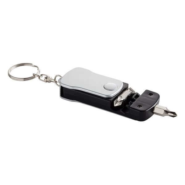 This multifunctional key light offers you a flat head and Phillips screwdriver, in 2 sizes, combined with a bright LED light. Battery included. Plastic