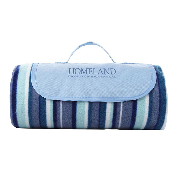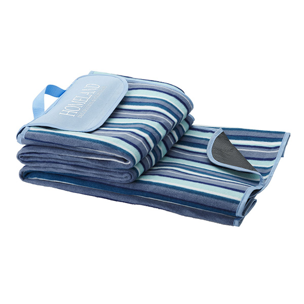 Riviera picnic blanket. Picnic blanket with water resistant backing with easy carry handle. Blanket size is 160 x 125 cm. Polyester fleece.