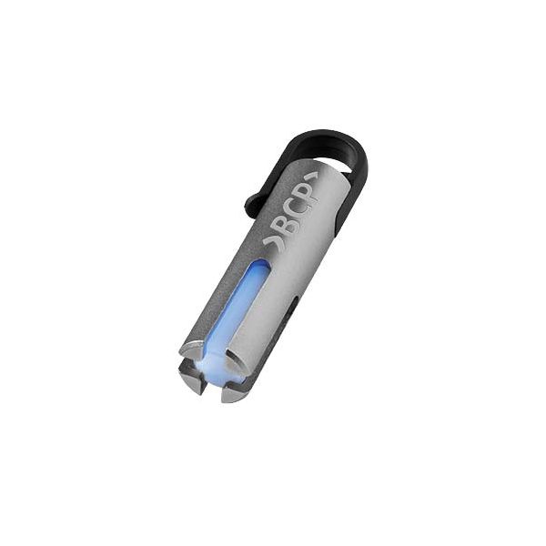 Nano locator key chain. Never lose your keys in the dark with the Locator key chain. The integrated glow in the dark vial will charge itself when exposed to light. Fully charged, the vial will glow a blue light for 6-8 hours. The vial is protected by a high grade aluminium frame. Easily clip your locator with the integrated Click & Go system to your keychain or travel accessory. Packed in a Marksman gift box. Exclusive Design. Aluminum and ABS.