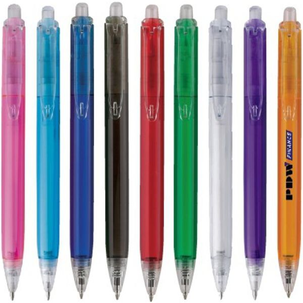 Bright fun light and the perfect promotional pen to put your logo on. Transparent clip and barrel. Large print area on barrel. Black ink.