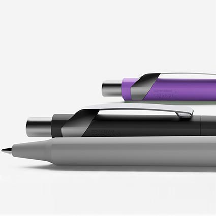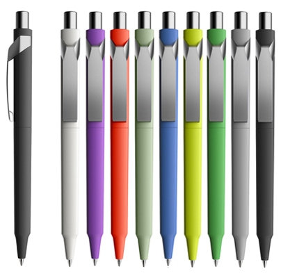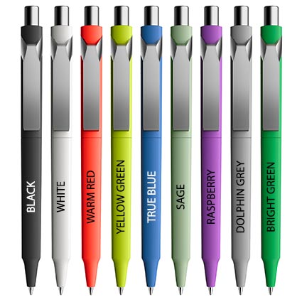 Honoured with the IF Product Design Award for outstanding design. Made with a unique and elegant design and a choice of 9 soft touch colours for a contemporary, tactile finish. These personalised Soft Feel Pens are high impact, high-quality writing instruments each complete with a metal clip and push-button that can have a chrome or satin finish (please state at time of order). Choose between blue or black ink. Please note barrel can only be printed in black, silver or white.
