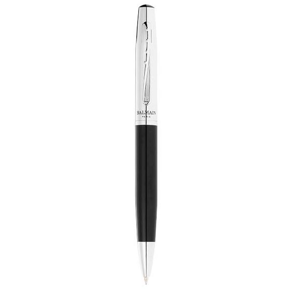Ballpoint pen gift set. Exclusive designed set including a mechanical pencil, rollerball pen, ballpoint pen and matching imitation leather pen pouch (15.5 x 6 cm) presented in a Balmain gift box (size: 18.5 x 17 x 3.5 cm). Metal and imitation leather.