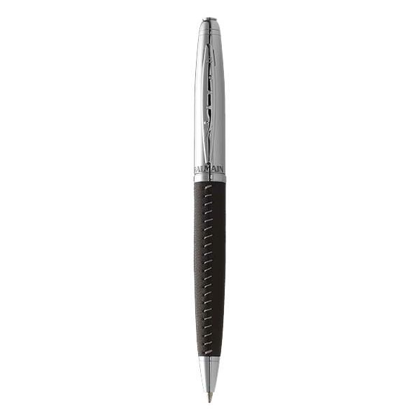 Ballpoint pen gift set. Exclusive design gift set with a leather wrapped ballpoint, imitation leather keychain and wallet with credit card pockets all featuring colour contrast white stitching. Presented in matching luxury Balmain gift box. Metal and imitation leather.