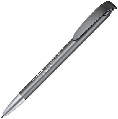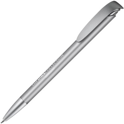 A metallic looking plastic barrell and clip with a metal satin nose cone. Both parts can be supplied in the colour choice shown. Silktech refill made in the Klio factory.