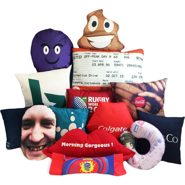 UK Made full colour branded logo cushions. Bespoke printed cushions any size and shape. Printed full colour edge to edge onto luxury mock suede fabric. Pantone matched colours. Filled with hypo allergenic polyester fibre.