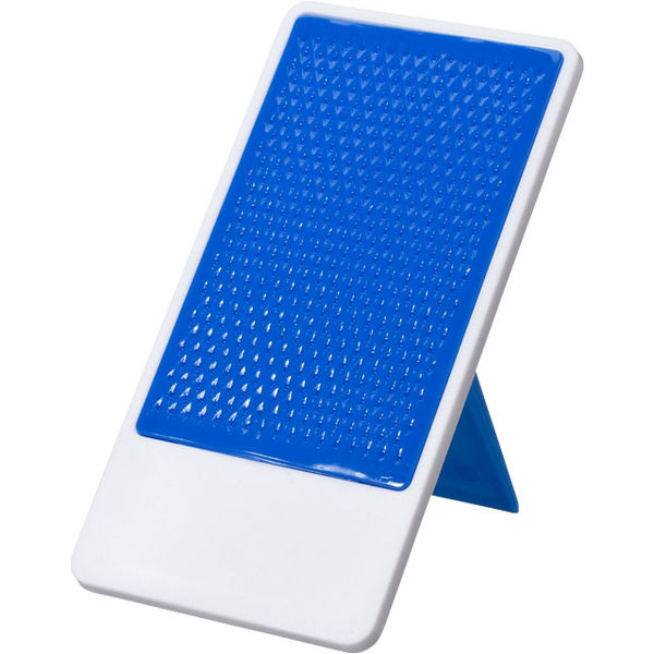 Desktop sticky pad mobile phone holder with folding stand. Plastic