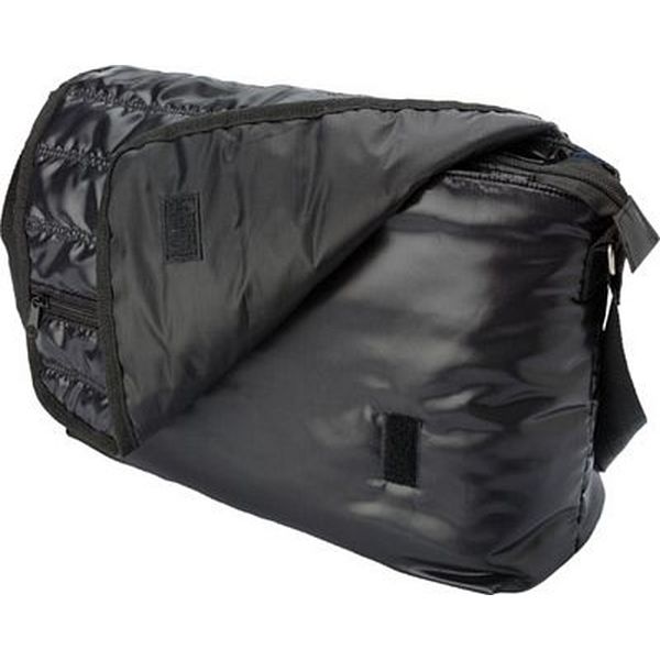Polyester messenger bag (240D) with PU coating and a quilted flap, zipped main compartment, one zipped front pocket and one adjustable nylon carry strap.