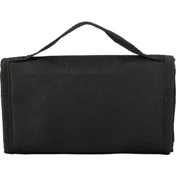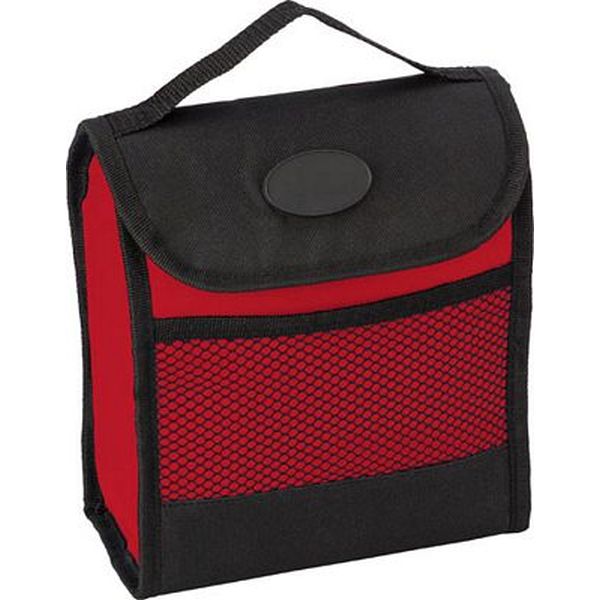 Polyester 600D foldable cooler lunch bag with one large compartment. To be closed with a Velcro closing.