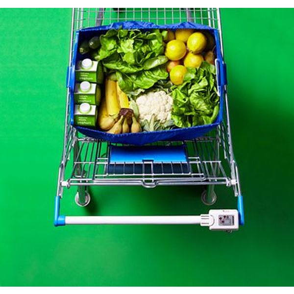 Trolley shopping bag with two plastic handles and two ⬠Euro plastic coins which are supplied in the internal pocket.