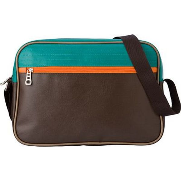 PU Retro style flight bag with a front zipped compartment, zipped interior pocket with pen slots and supplied with a adjustable shoulder strap.