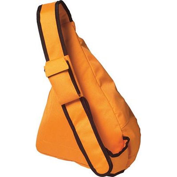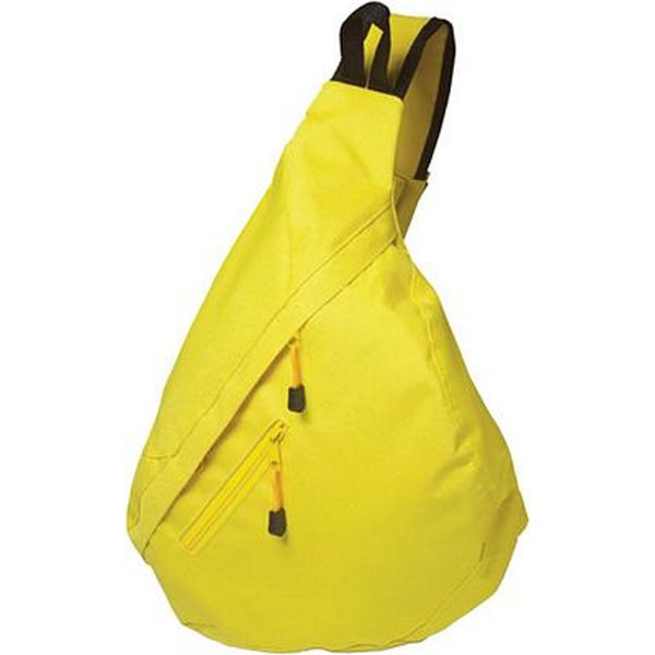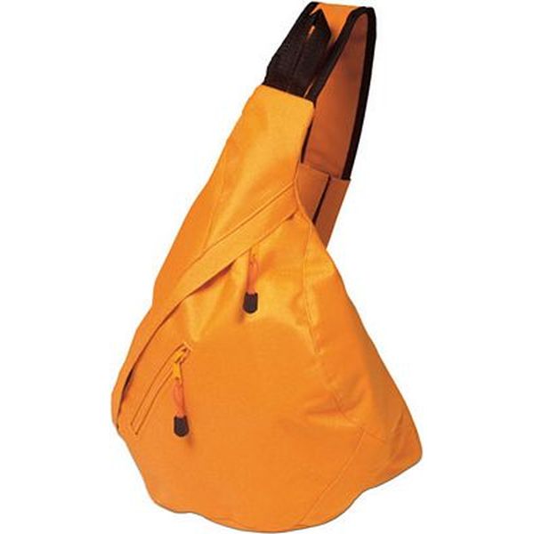 Triangular city bag in a 600d polyester material with a shoulder strap, mobile phone holder and a zipped outer pocket.