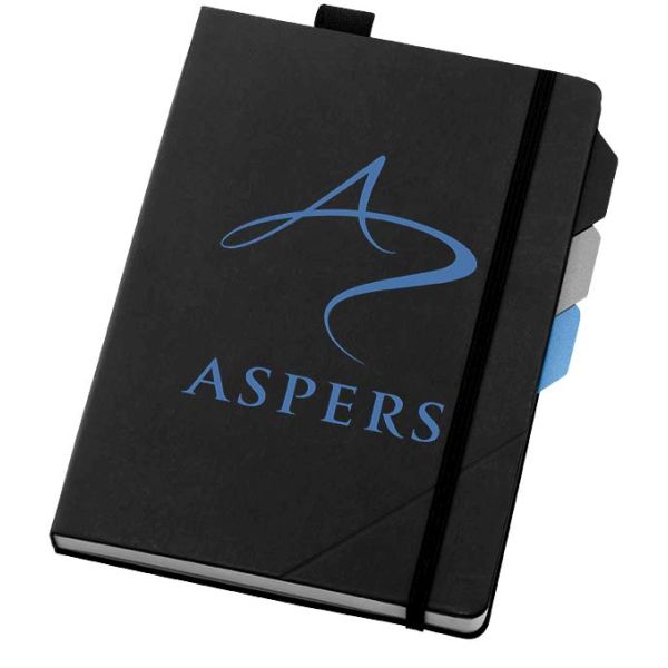 Alpha notebook incl. page dividers. Exclusive design notebook with 96 sheets (100gsm) lined paper, elastic closure and 3 page dividers which can be used as marker or to identify sections. The Alpha also includes an inner pocket at the back to store notes and business cards and a pen loop attached on one of the page dividers. Packed in a Marksman gift box. Leather paper covered cardboard.
