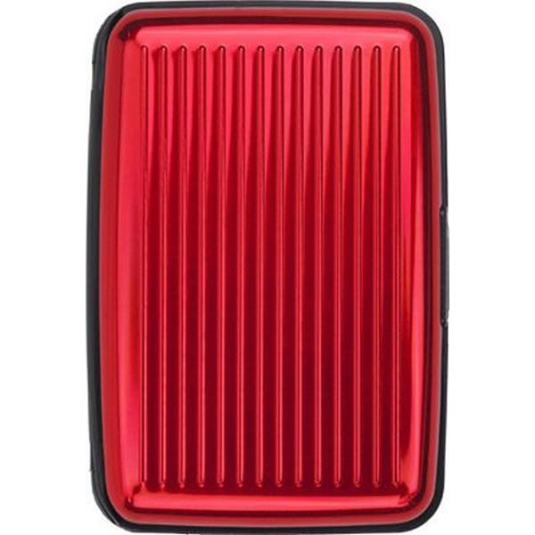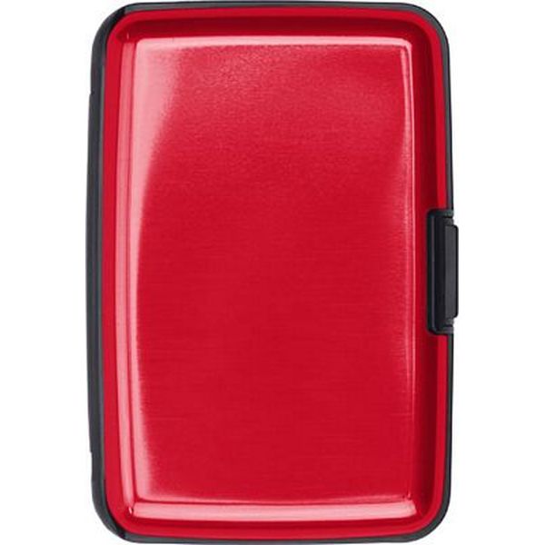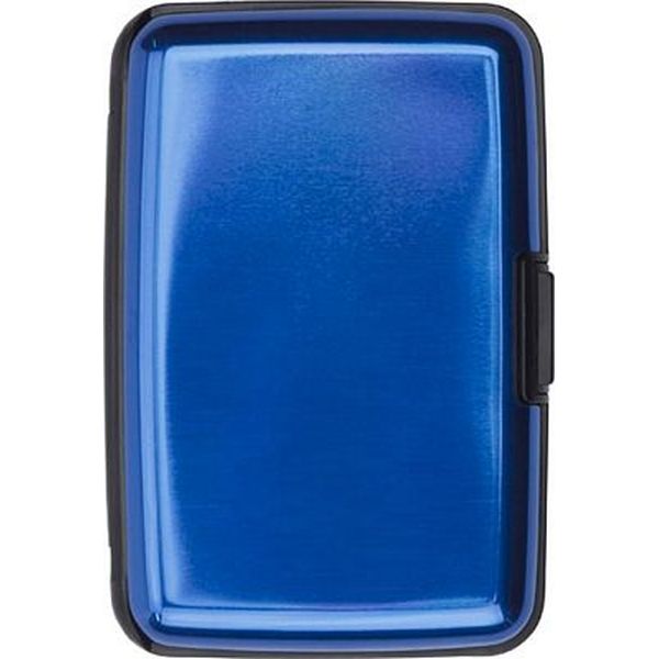 Aluminium and plastic credit/business card case with seven internal concertina pockets.