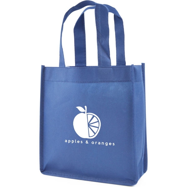 Recyclable 80gsm non woven PP mini bag with handles and gusset. Ideal as a sandwhich bag to carry your lunch in or as a gift bag.