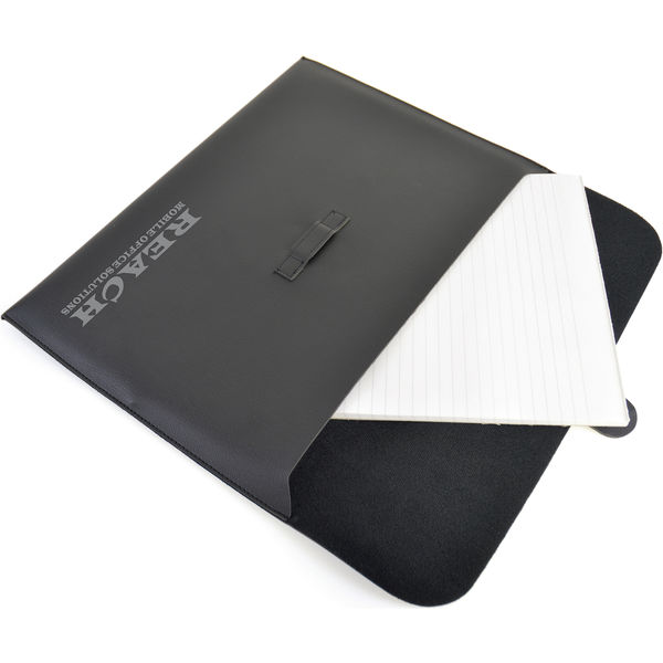 A4 sized grained PVC document holder with soft material lining. Leather look with stitching detail and front tab closure.