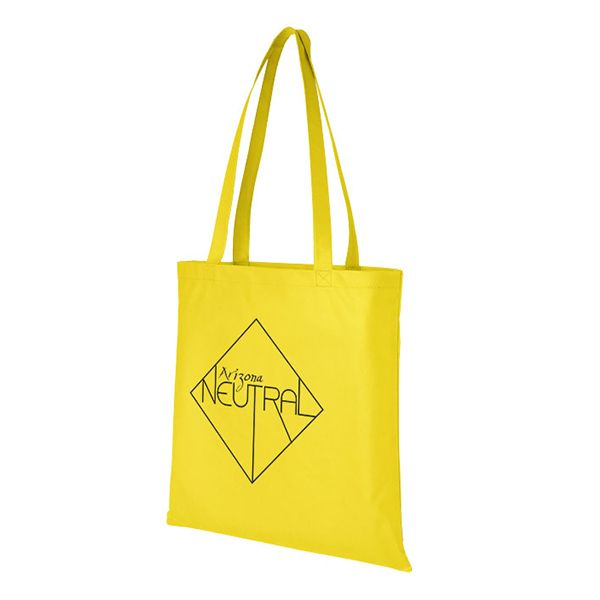 Slim design tote with open main compartment. Reinforced handles for added durability. Drop down height handles 29.2 CM. Bag is recyclable. Non woven 80 g/m polypropylene.