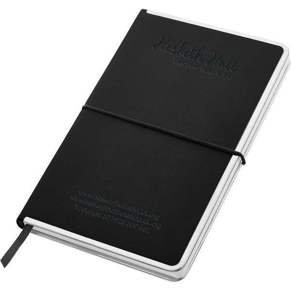 Smooth hardbacked covers and gilt edging creates a luxurious look for your promotions. Combined with our expert embossing process it creates a promotional pad that any recipient will treasure. It's supplied with 96 sheets of 70gsm lined cream paper and has a horizontal elasticated closure to keep the book closed when not in use. All books in our Manhattan range are supplied with a pre-printed belly band for a stylish gift.