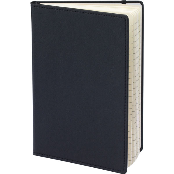 Black notebooks made from Reach compliant PU. Elastic closure and ribbon page marker. Contains 100 sheets of 70gsm lined paper.