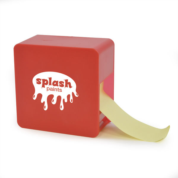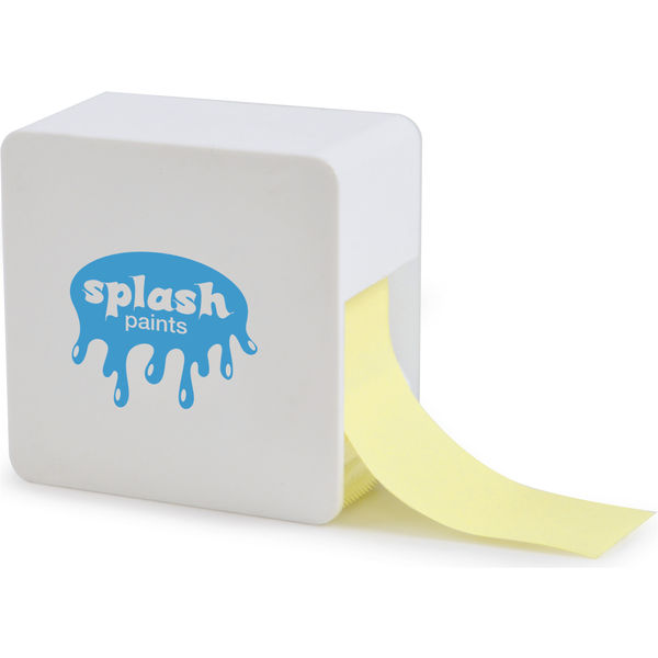 5m long yellow sticky not tape housed in a square plastic casing with a serrated edge for easy tearing.