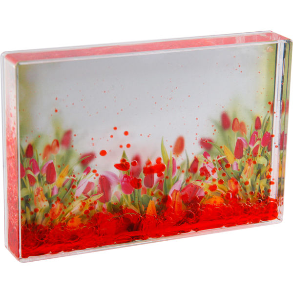 Blue liquid filled rectangular acrylic block with large branding area. Shake to bring your brand alive! Can be supplied as plain stock or assembled with a printed insert to one side.