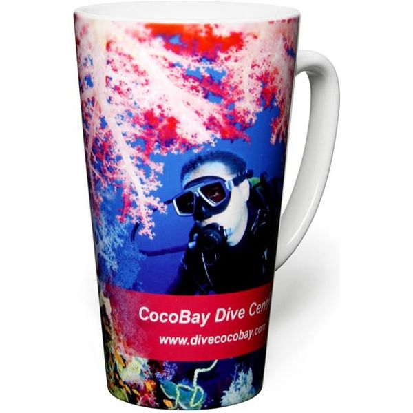 Cafe Latte White. The tall modern styling of the Cafe Latte mug will not look out of place in any modern business. Can be screen printed or printed in full colour using Duraglaze dye sublimation.