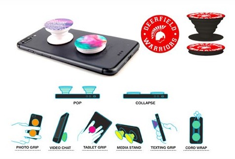 Pop Sockets are a great utility product due to its many uses, which sticks to the back of your mobile device. Simply pop it out and it can be used as a grip aid allowing you to hold on to you device easier and more comfortably. Also, doubles as a kick stand for hands free viewing. When not in use you can use it as a earphone cable winder. Full colour print
