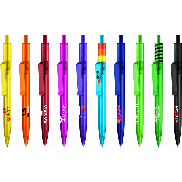 Uniquely styled retractable ballpen with distinctive angular clip and slim push-button. Available in a range of transparent coloured finishes. Fitted with a blue G2 super large capacity refill.