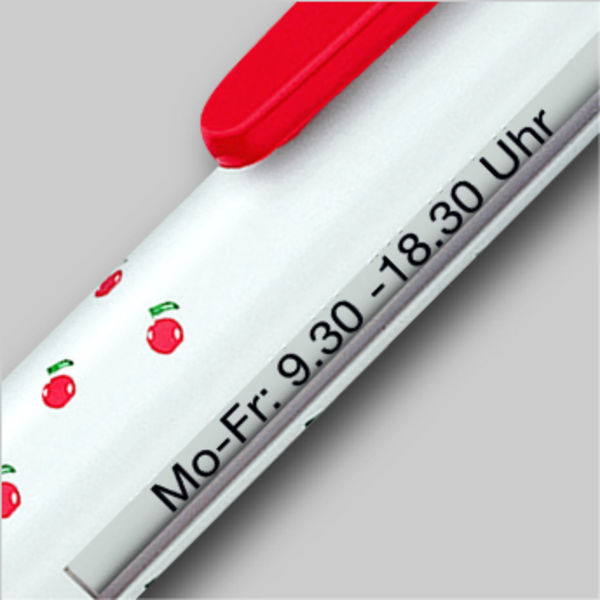 Retractable ballpen with rotating message tube for up to 6 messages visible through 2 viewing windows. Fitted with a soft grip and X20 black or blue ink refill.