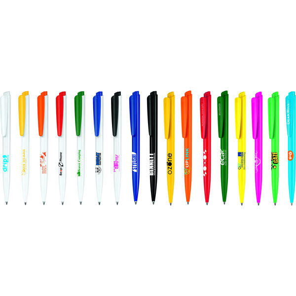 Great value high-function ballpen in a range of assorted colours with black ink refill. White barrel with coloured clip or coloured barrel with matching clip. Pantone match service available from only 5000 units.
